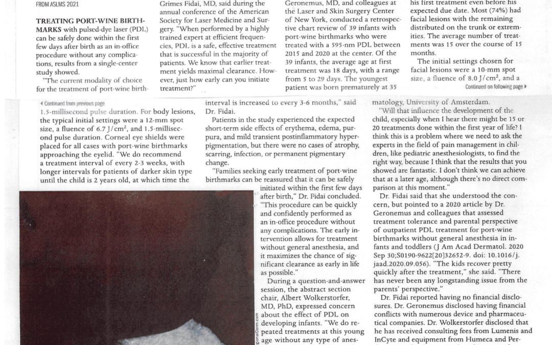 Dr. Roy Geronemus conducted a retrospective chart review of 39 infants with port-wine birthmarks to study the safety of laser treatments in infants. Read the article here.
